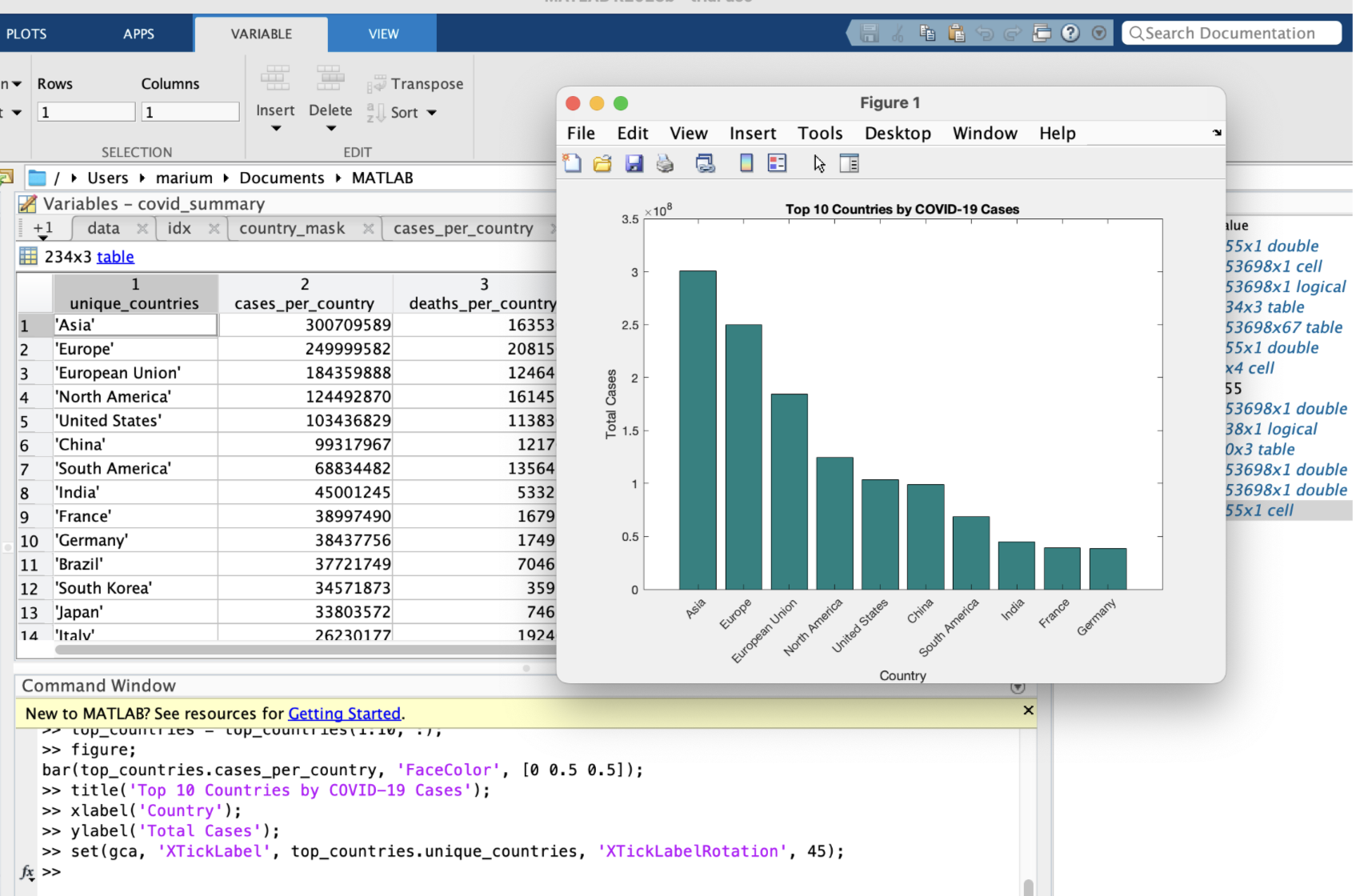 - Solution: Implemented logical indexing in MATLAB to filter out the rows corresponding to 'World' and 'High income'.