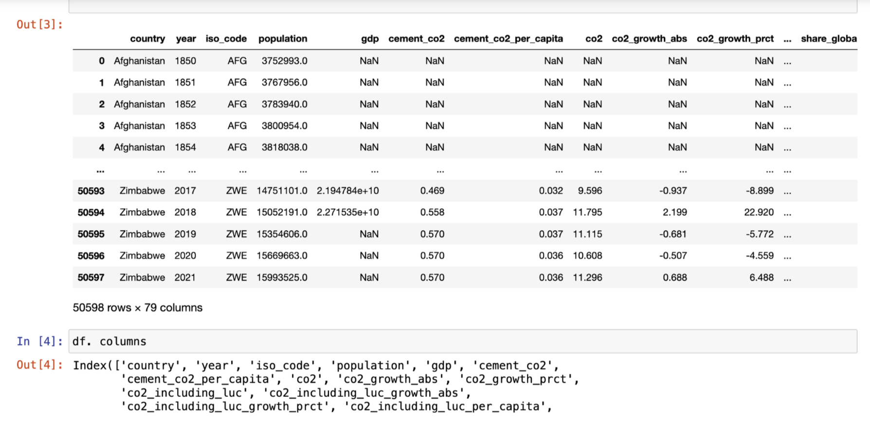 - Country-specific records, including population, GDP, and CO2 emissions.